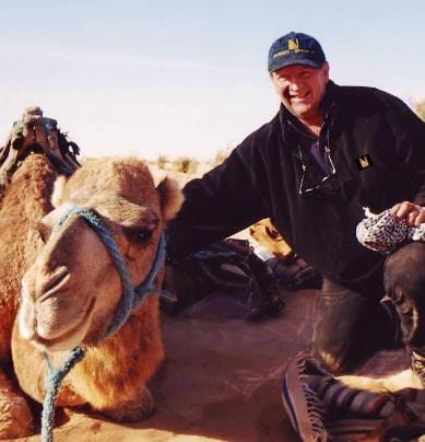 Author and Narhex Founder, Mr. John Majewski, crossed the dry, treeless Sahara desert with his youngest son. four camels and two Bedouin guides, arriving at the Tunisian Roman oasis, Ksar Ghilane.